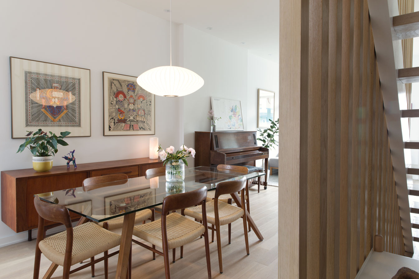This renovation and refresh of a semi-detached Victorian home in the Kensington Market area focused on bringing a sense of openness and modern livability to a historic structure. The original floors were painted white, instantly brightening the interior and creating a lighter, more expansive feel throughout the main level.